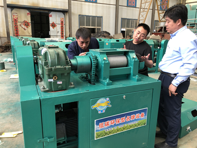 山西客戶到我公司考察新型豹牌對輥擠壓造粒機設備@BB肥設備認準豹牌